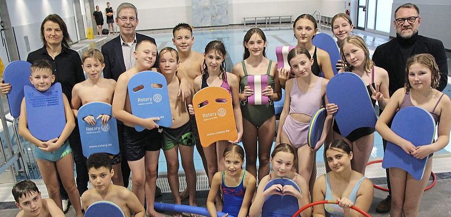 Als Thomas Jöllenbeck am Freitag zur Spendenübergabe in die Sekundarschule kam, hatte er übrigens noch mehr Schwimmspaß dabei: 30 zusätzliche Schwimmbretter brachte er mit – aus dem Projekt „gesundekids“. Als Mitglied im Distrikt-Team „gesundekids“ des Rotary-Distrikts 1900 hat er die Initiative „gesundekids“ im Rotary-Club Erwitte-Hellweg mit bereits fünf Projekten in Lippstadt und Warstein initiiert und möchte damit einen dauerhaften Beitrag für gesündere Ernährung und mehr Bewegung bei Kindern leisten. HANNAH LÖSEKE, Soester Anzeiger, 29.11.2025